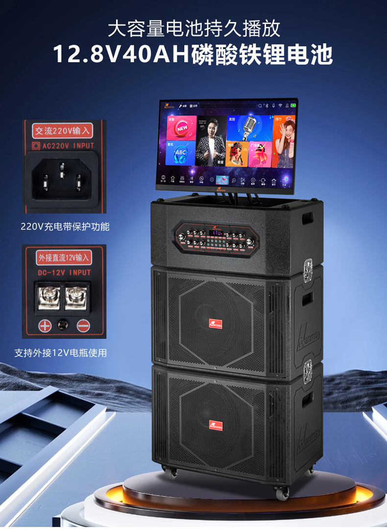 内置12.8V40AH磷酸铁锂电池,播放时间4个小时以上