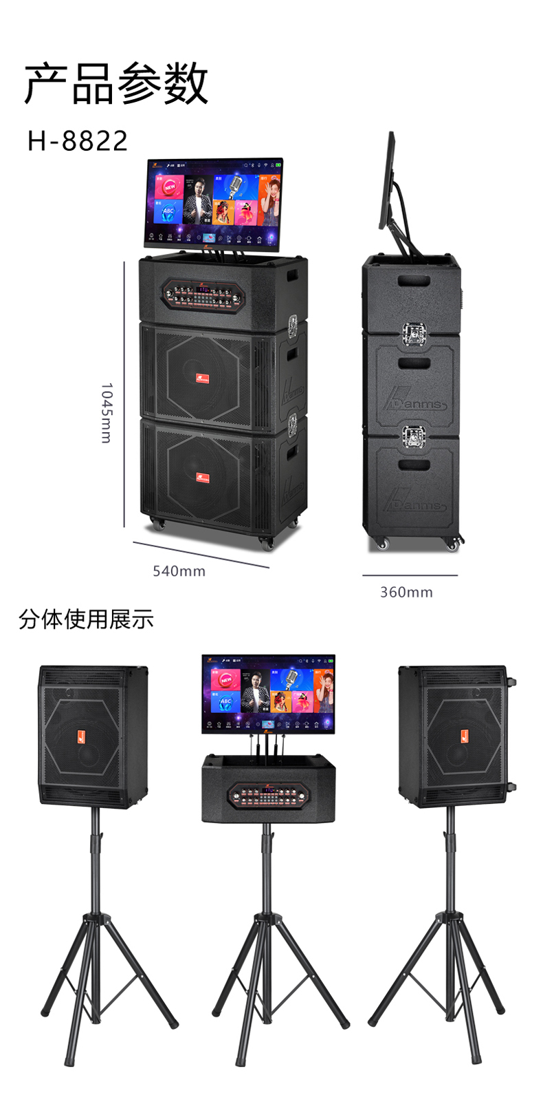 家庭/户外专业K歌,可组合可分体直播音响H-8822