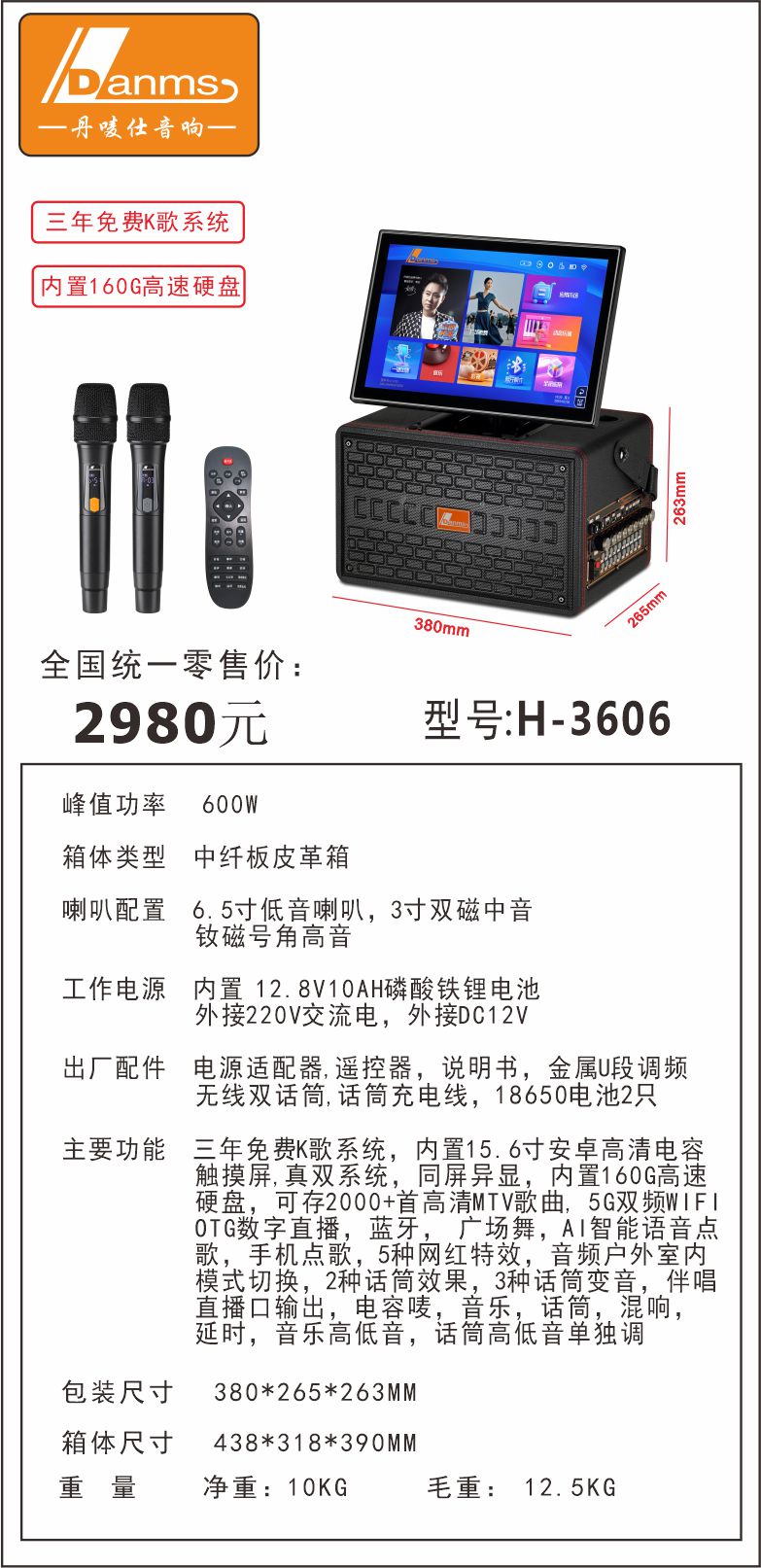 户外/家庭高端专业演出音响K歌直播视频音响H-3606